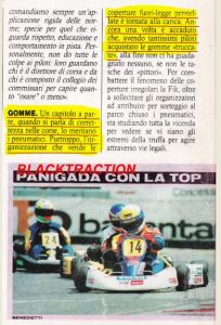 - and after 22 years of collaboration to increase the ‘grip of the tires with teams in the specialties of racing on the track, to car and motorcycle world competitions (F. Opel, F. 3, F3000, GP 2, F1, GT; moto 2 world championship, stock 600 and 1000, in super sport and Malossi, CIV),on the best level in the world.